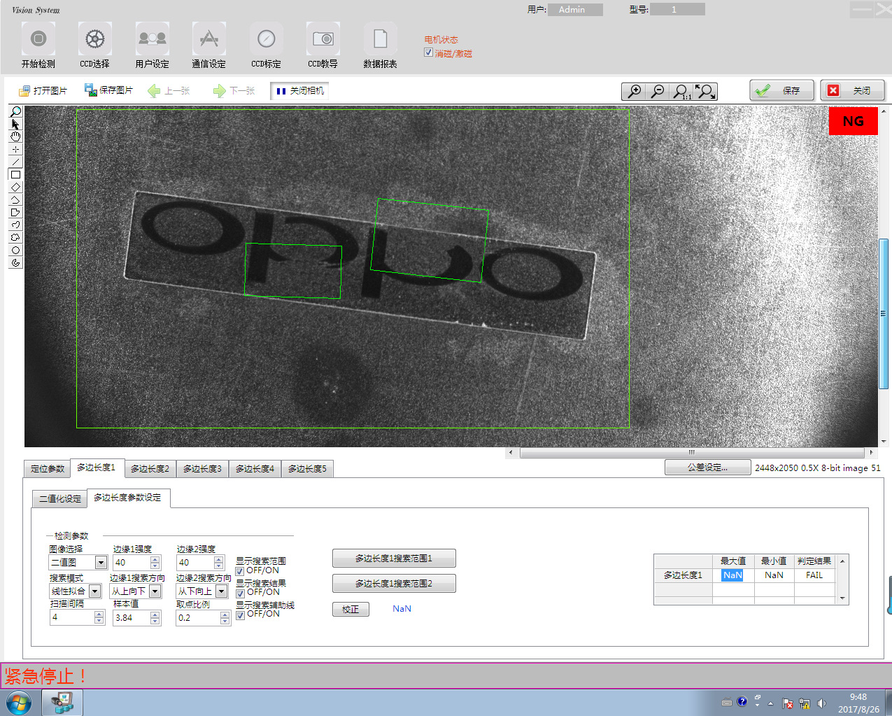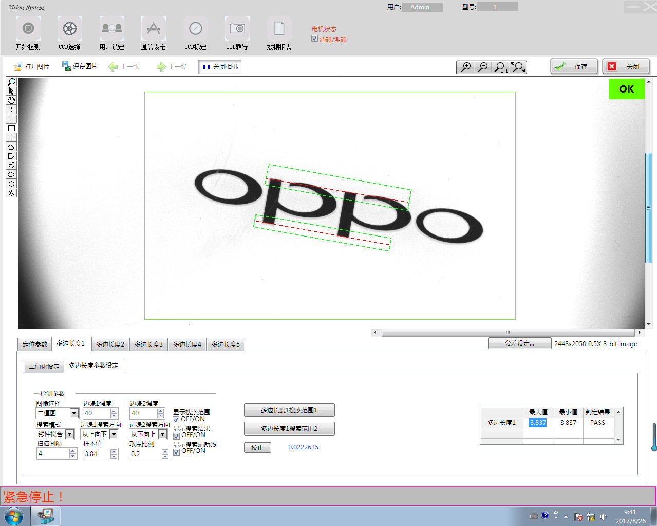 Logo字符检测系统是利用CCD摄像头采集通过它拍摄区域的图像,运用先进的图像分析处理算法,能准确无误的分析检测出logo字符表面的缺陷,提高生产效率和确保生产质量,本系统针对logo字符尺寸进行检测,确保产品的品质,视觉检测系统简单设定后,即可自动检测,对不符合要求的工件检测后可输出控制信号,以确保设备在下一工位剔除不合格品。
